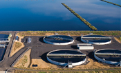 A water recycling plant treats wastewater to make it reusable for irrigation, industrial processes, flushing toilets, and recharging groundwater.